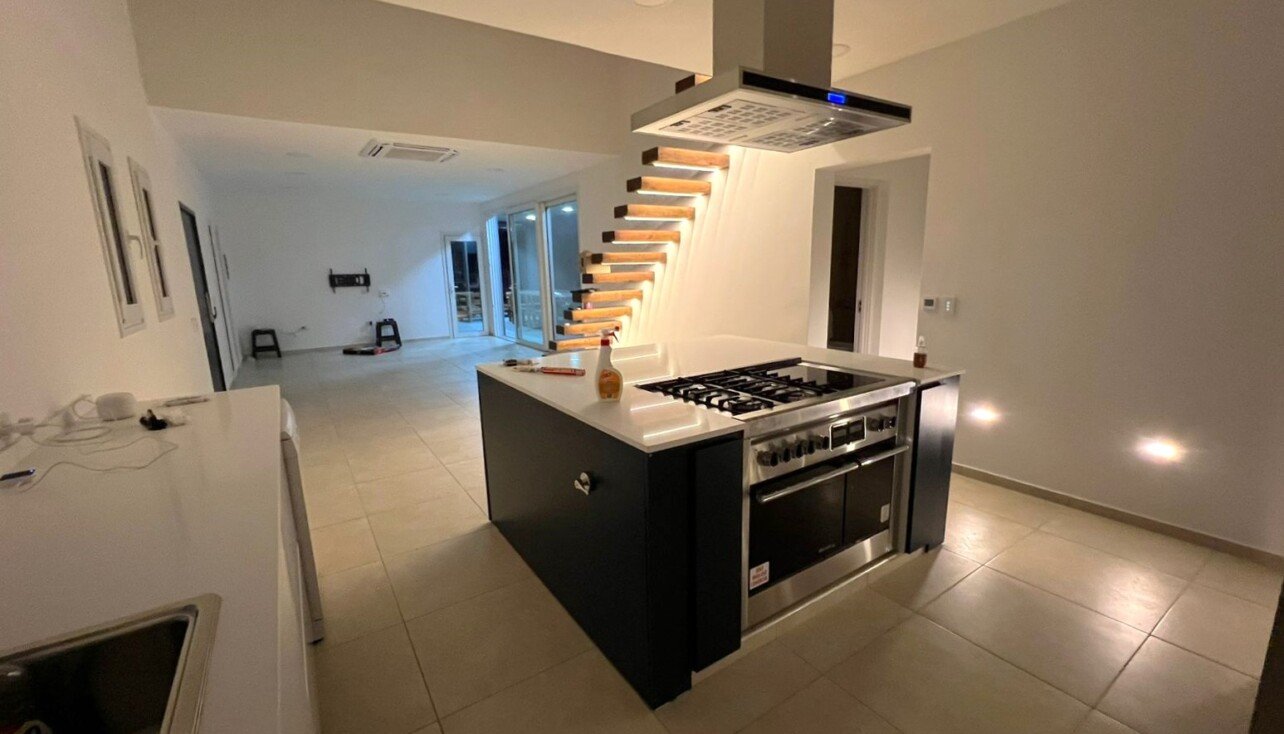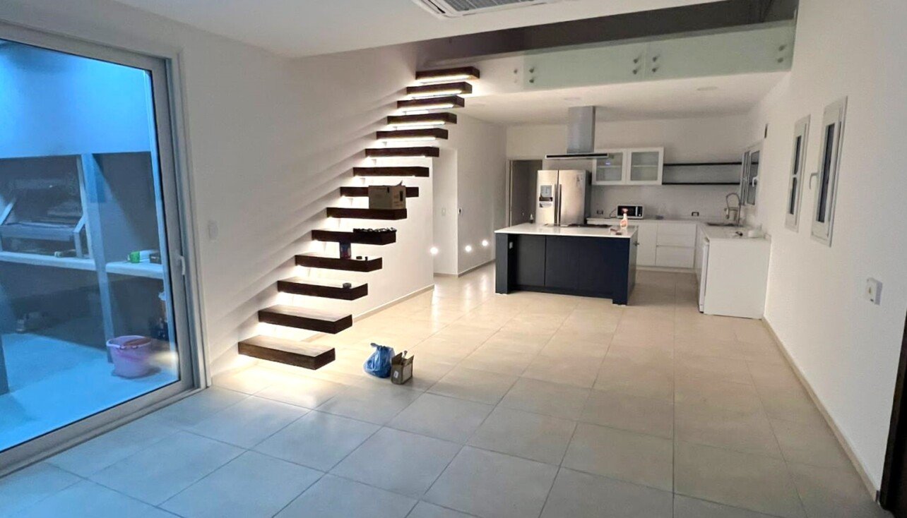 El primer módulo se caracteriza por su fluidez espacial, generada a través de variaciones en altura y transiciones entre el interior y el exterior. Desde el estar, el recorrido se extiende hacia el comedor y la cocina integrados, mientras que un playroom, ubicado sobre la cocina, balconea hacia el comedor, aportando dinamismo y continuidad visual.