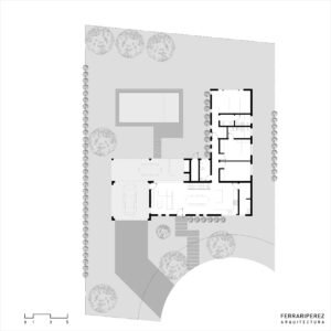 Ubicada al norte de la Ciudad Autónoma de Buenos Aires, esta casa de fin de semana establece un vínculo directo con su patio y entorno natural. Su diseño se organiza a partir de dos módulos intersectados a 90 grados, diferenciando claramente el área pública de la privada.